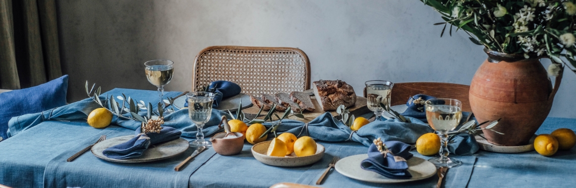 Zaproś rodzinę lub przyjaciół do stołu udekorowanego lnianym obrusem i delikatnymi serwetkami Lovely Linen. Dodaj świeże owoce, rustykalną ceramikę i naturalne dekoracje, aby poczuć prawdziwie śródziemnomorską harmonię.